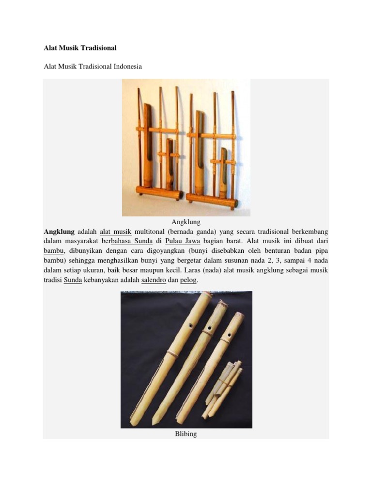 Bagaimana cara membuatnya, bagaimana aturan mainnya dan apa fungsinya? Alat musik ini berasal dari daerah bengkulu. Bentuk talempong menyerupai instrumen bonang pada gamelan. Japen alat musik japen merupakan alat music asli daerah kalimantan, nama japen berasal dari bentuknya yang sangat unik Kolintang adalah alat musik tradisional asli daerah minahasa sulawesi utara.